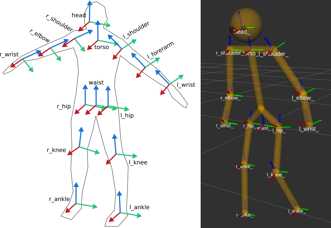 /humans/namespace.Kinematic Model and Coordinate Frames: TF frames and URDF models for humans.